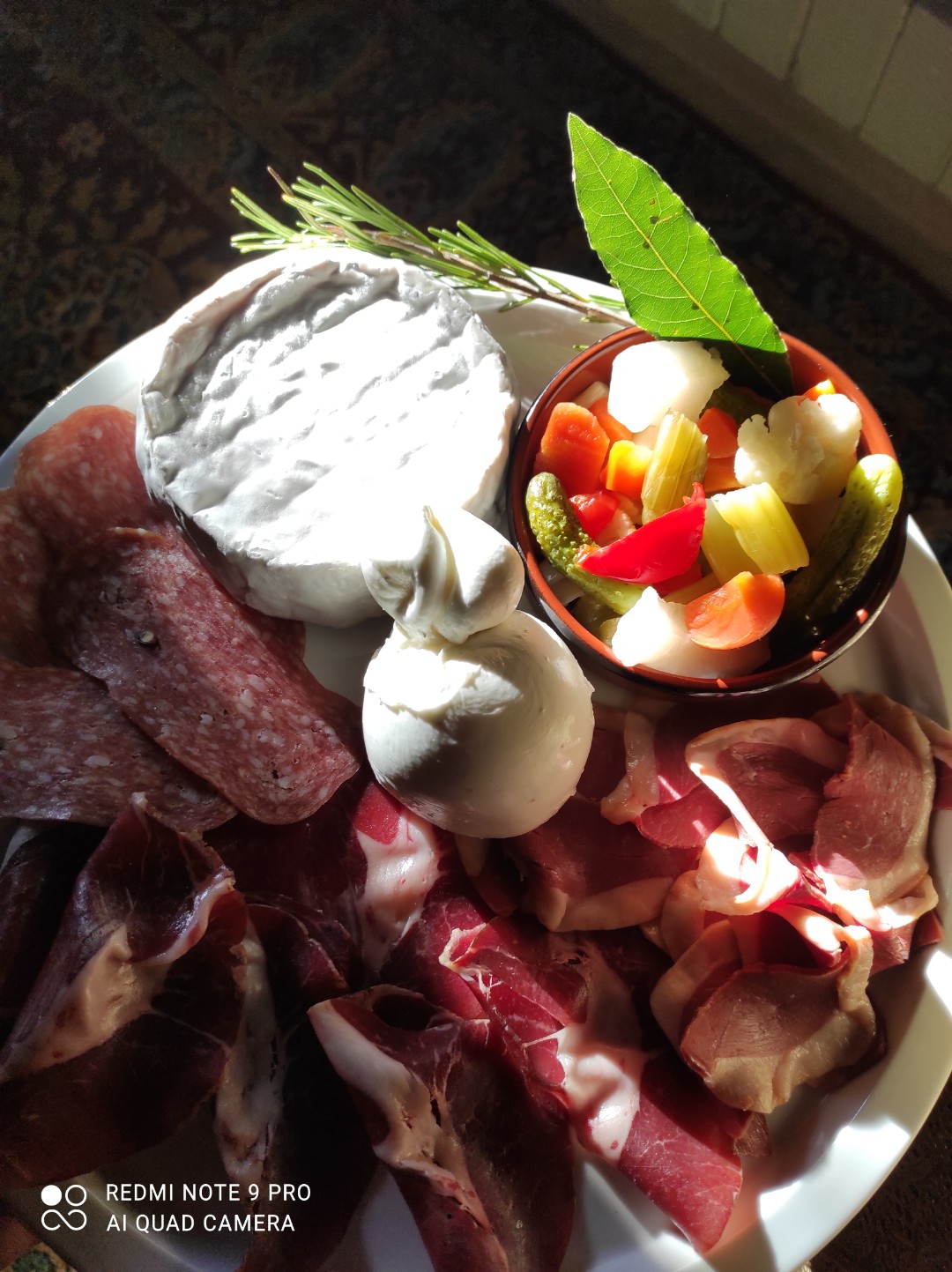 Mix di affettati e formaggi e giardiniera fatta in casa